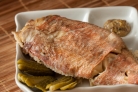 Острым большим ножом срезать филе со шкурой с позвоночника