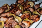 Чтобы мясо было более нежное и сочное, можно воспользоваться салом или беконом, для этого вполне достаточно обложить мясо тонкими пластами сала или бекона, мясо станет гораздо сочнее и ароматнее.