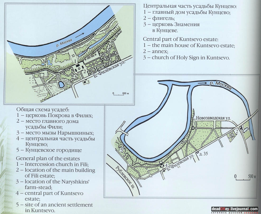 Общая схема усадеб Фили и Кунцево. Источник: "Архитектурно-парковые ансамбли усадеб Москвы".